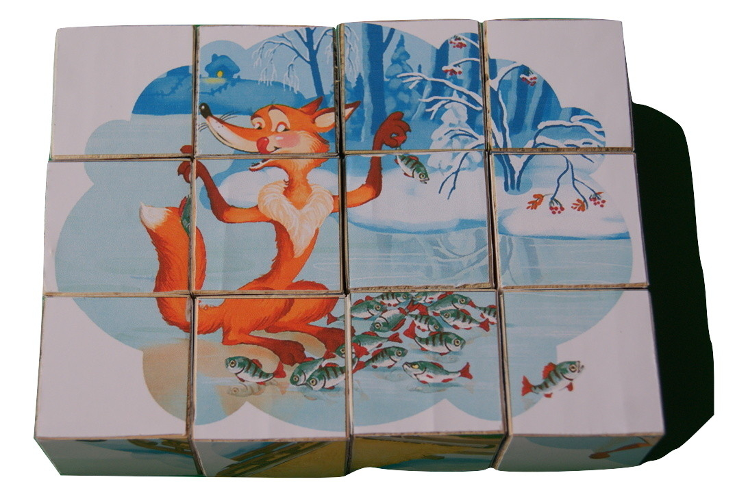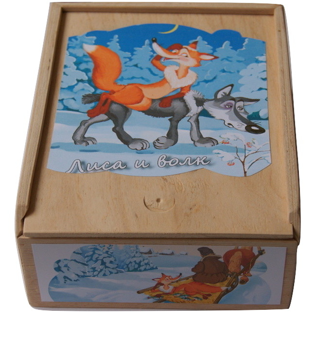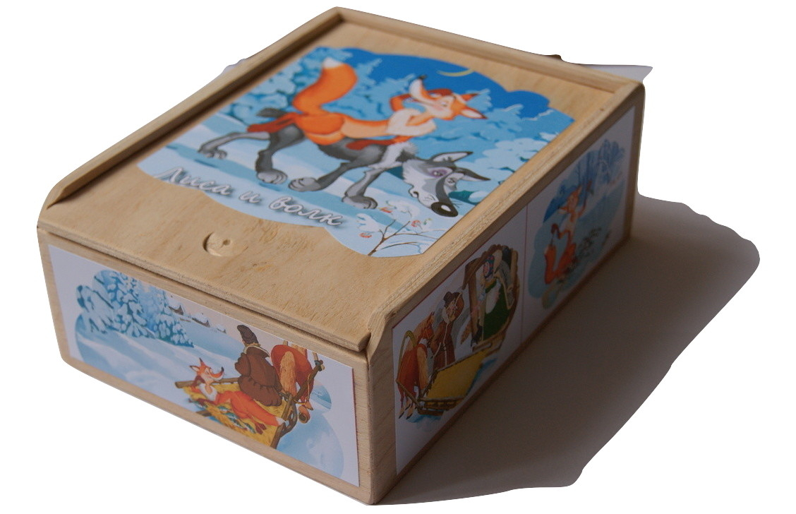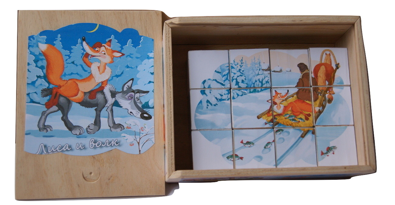Деревянные кубики сказка "Лиса и Волк" -это набор кубиков по