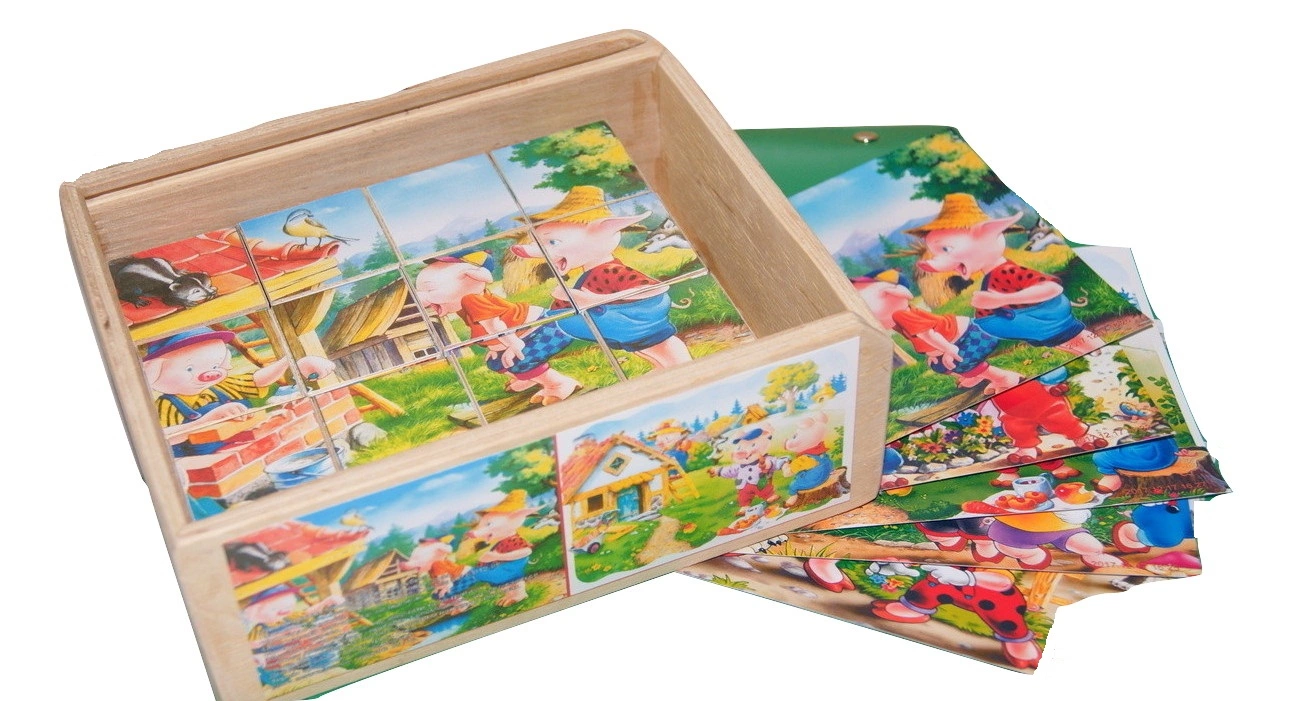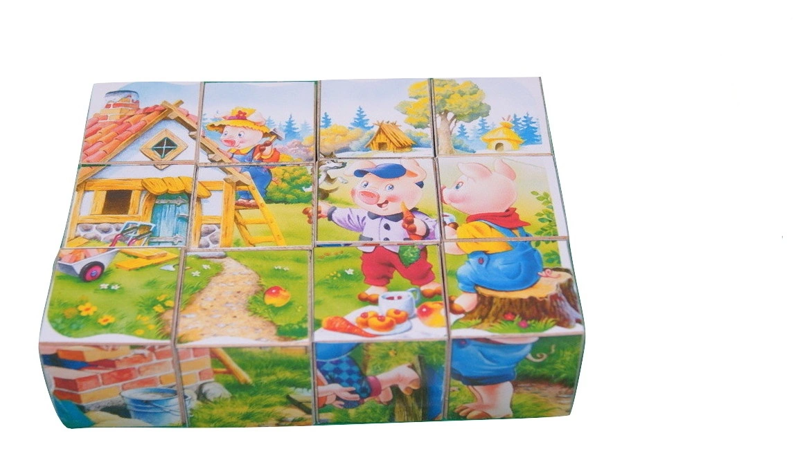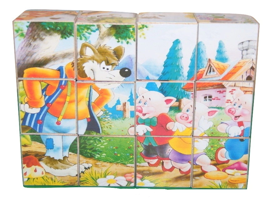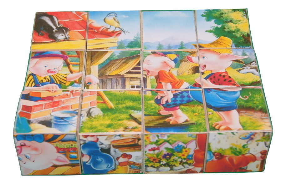 Деревянные кубики сказка "Три поросенка" -это набор деревянных